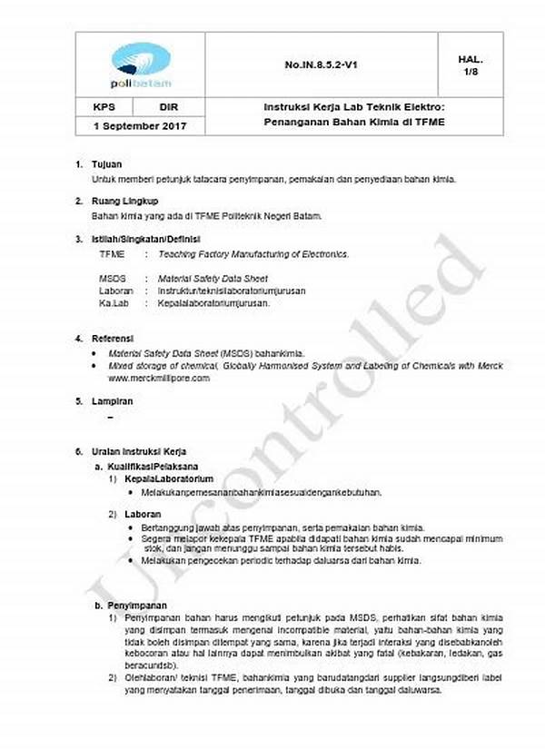 Penjelasan Singkat Tentang Instruksi Penggunaan Kimia